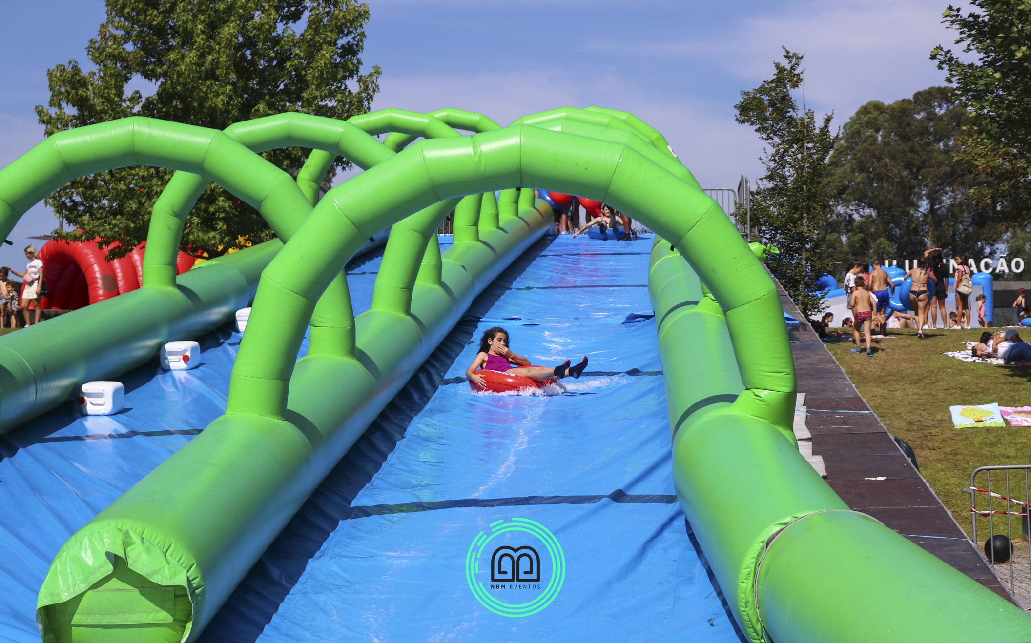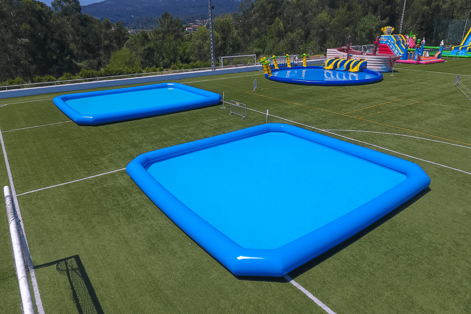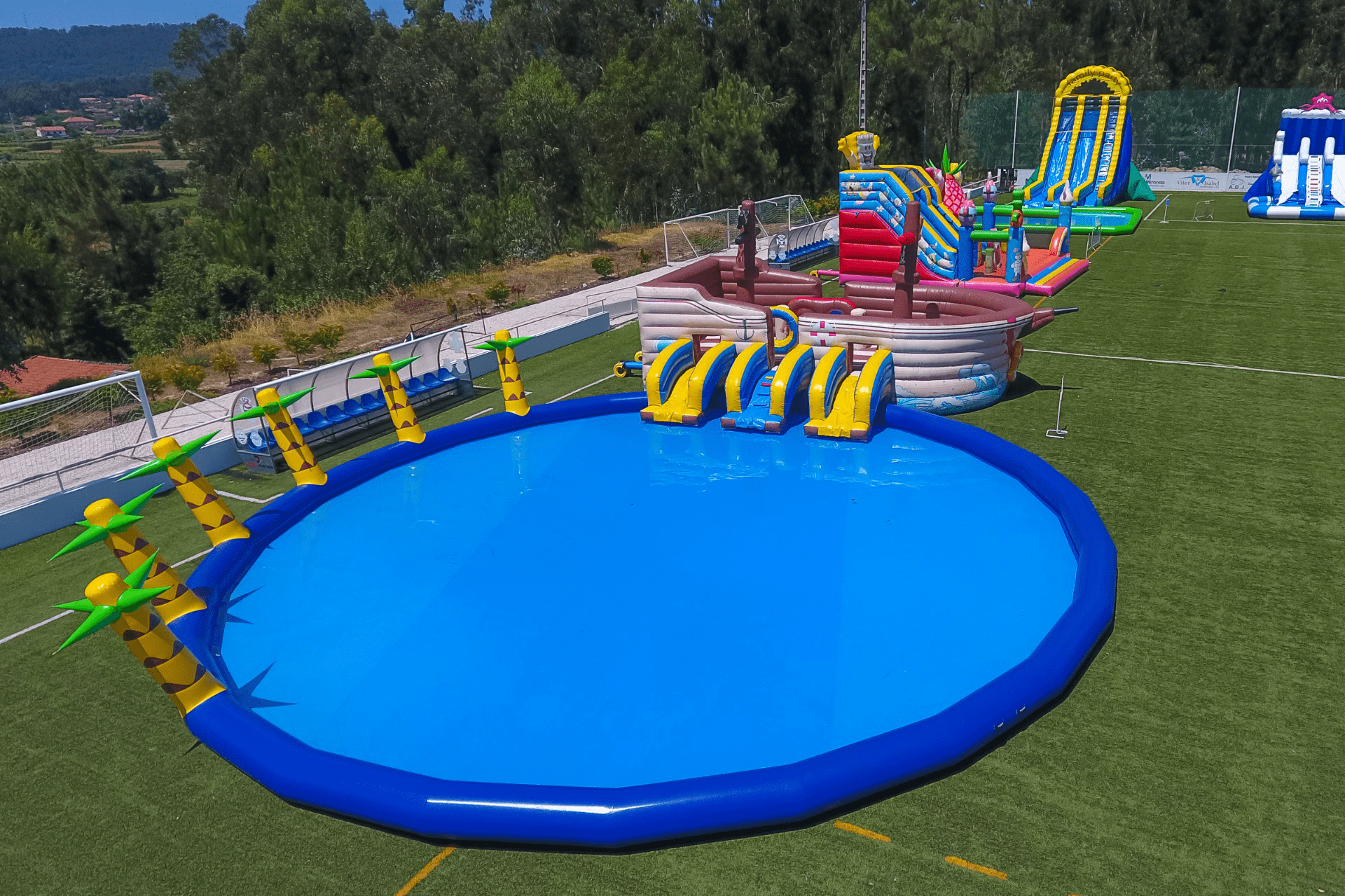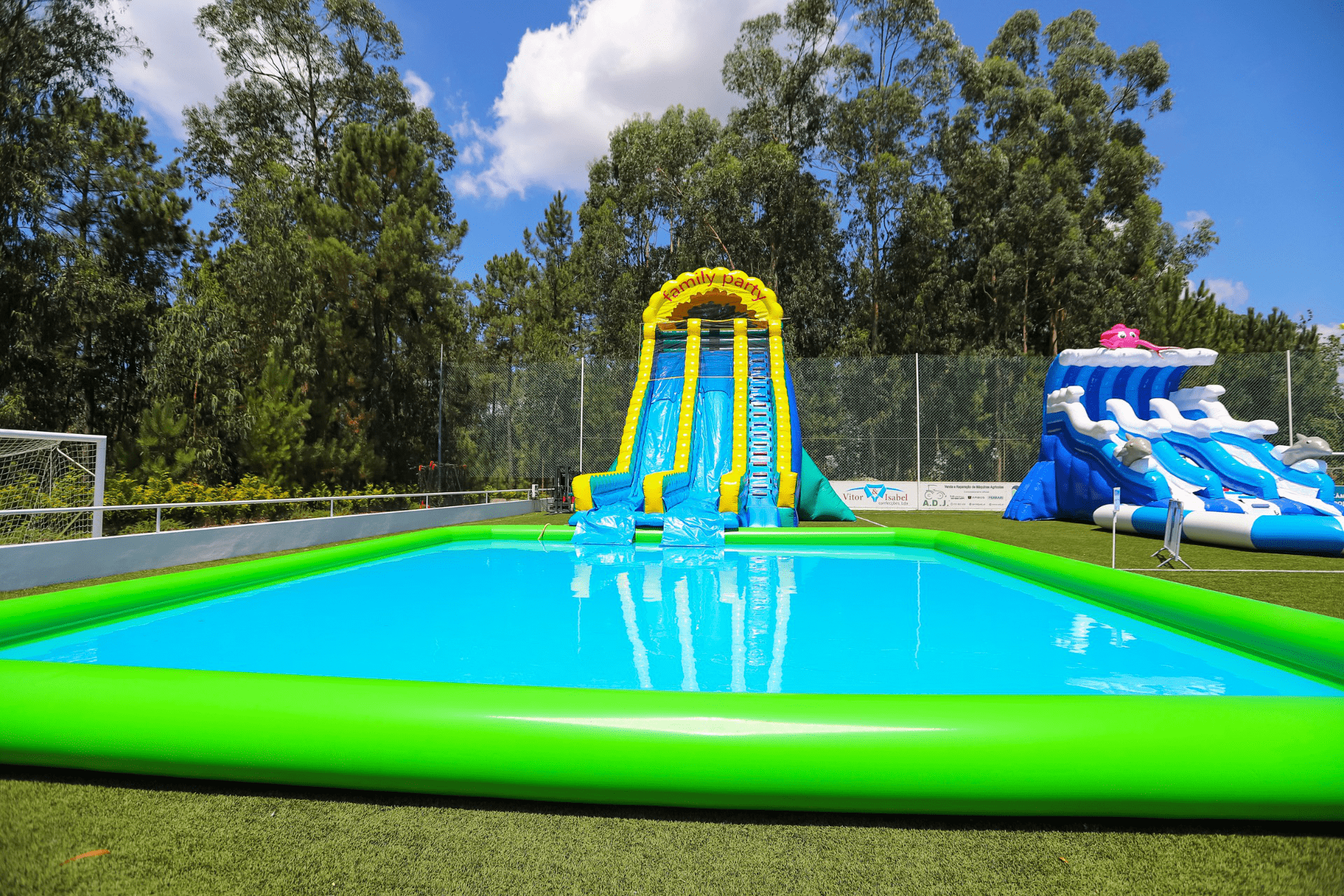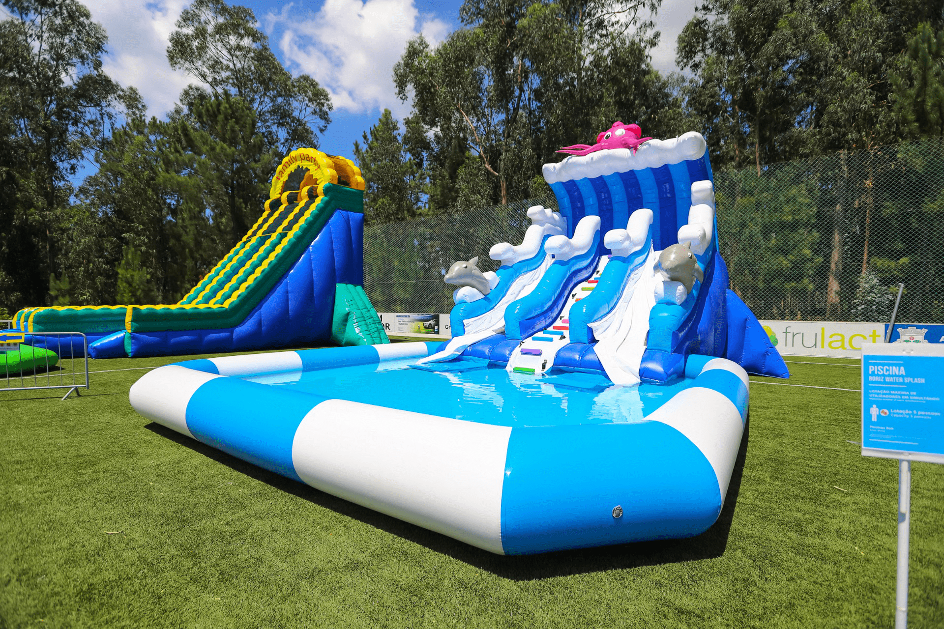 As atividades incluem insufláveis, jogos, piscinas ,musica e uma zona de restauração.