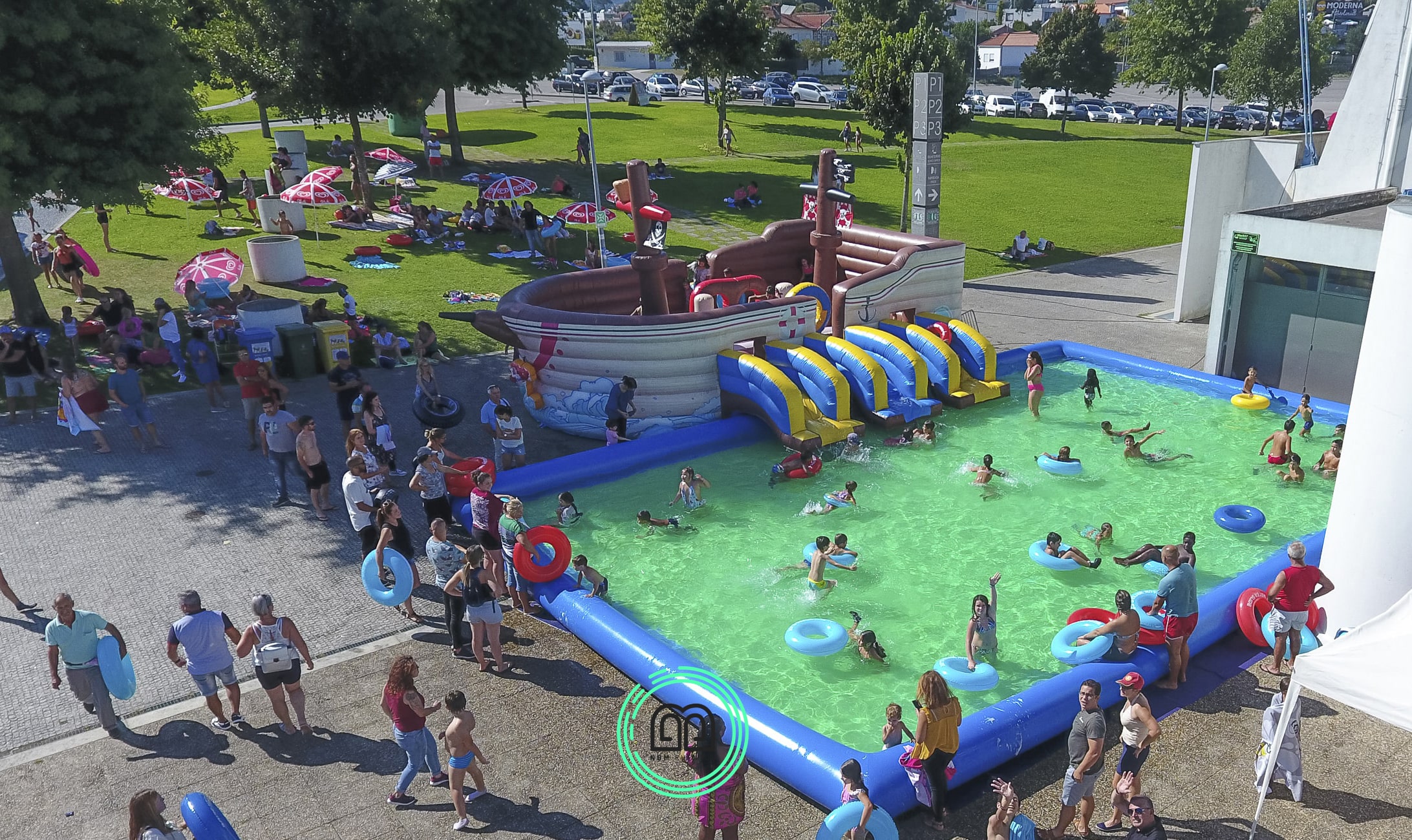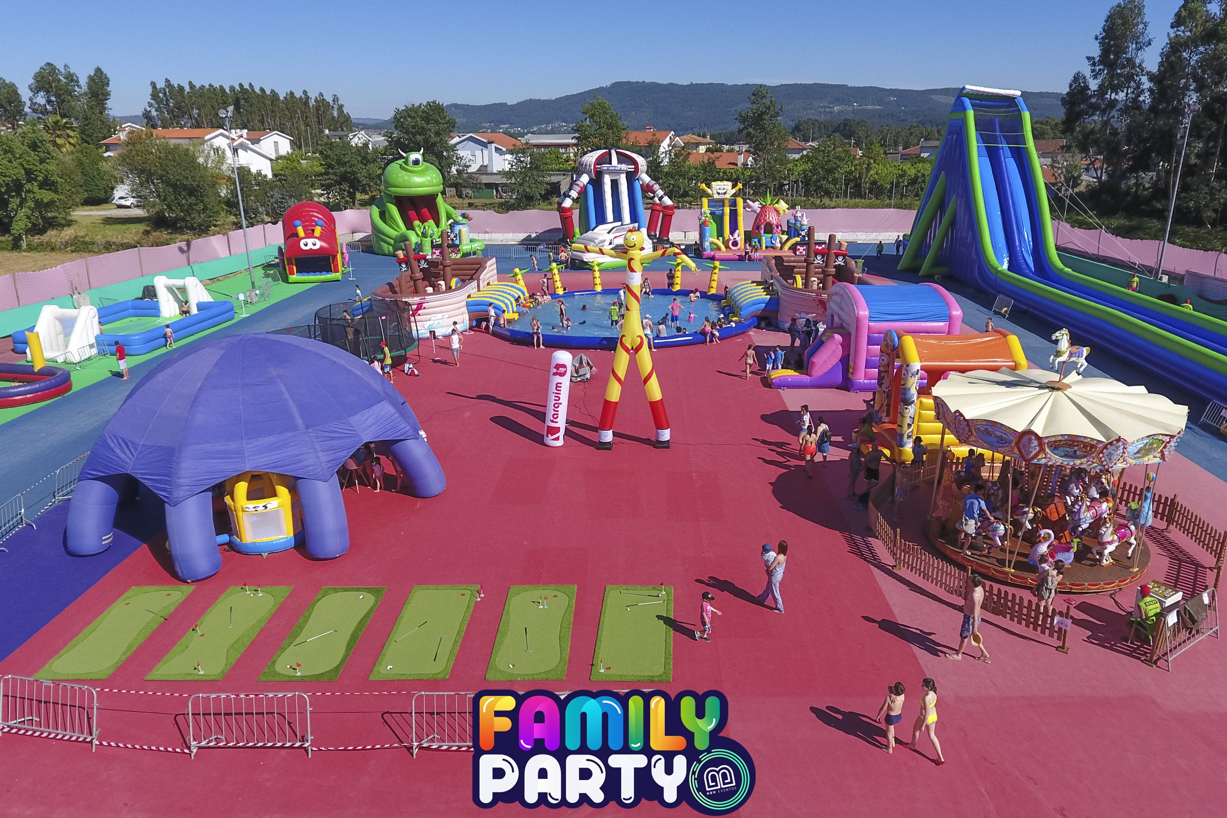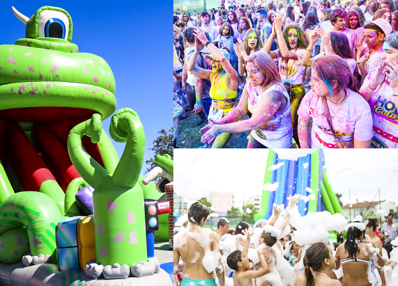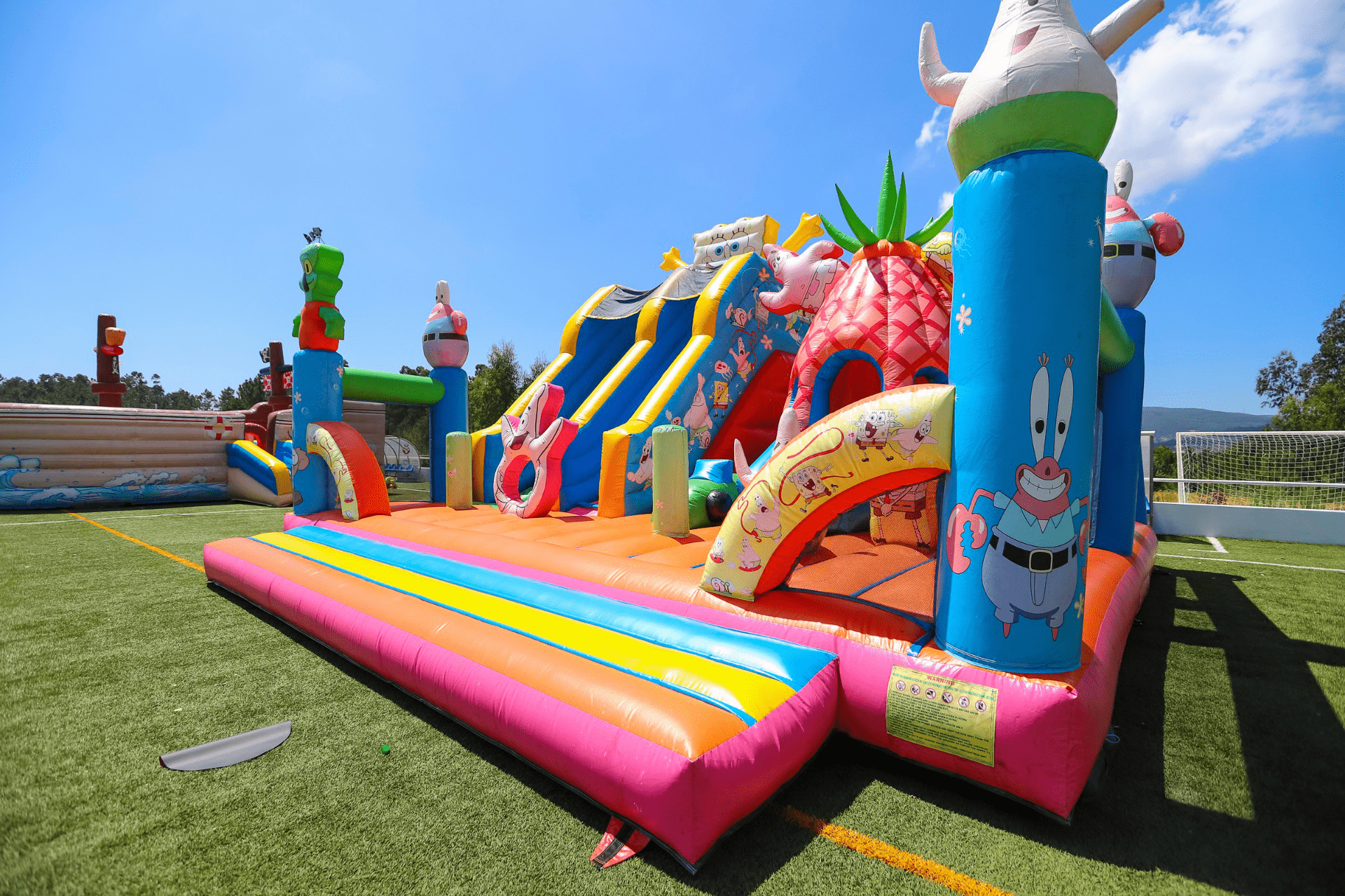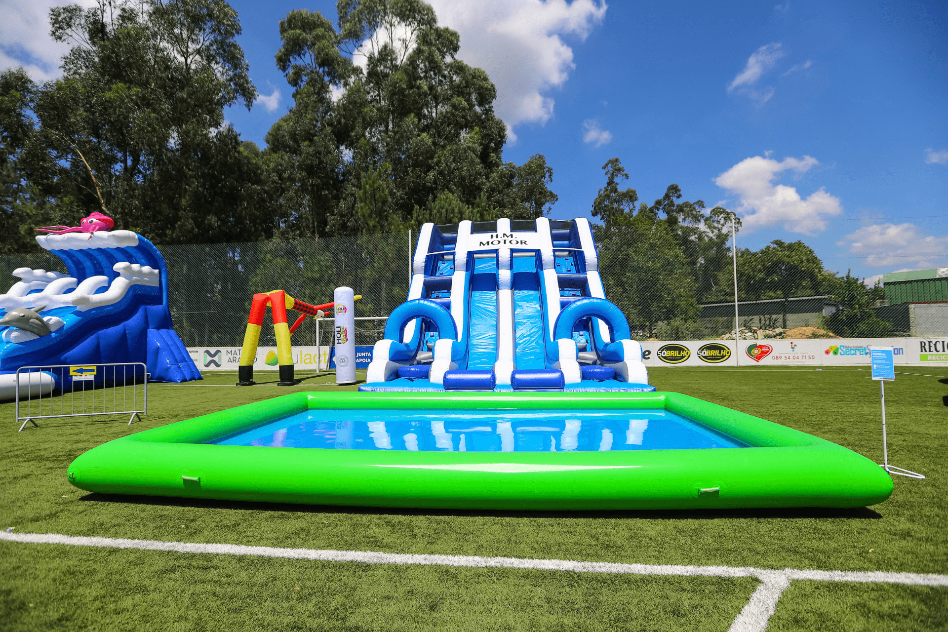 As atividades incluem insufláveis, jogos, piscinas ,musica e uma zona de restauração.