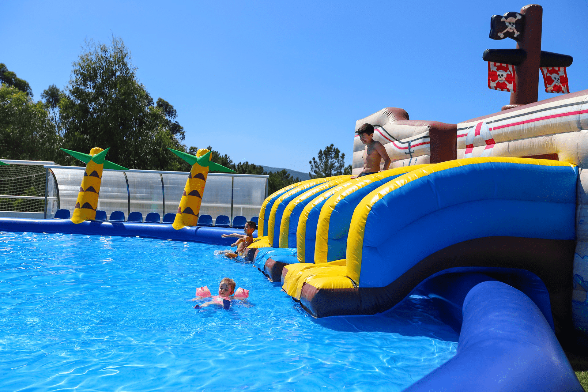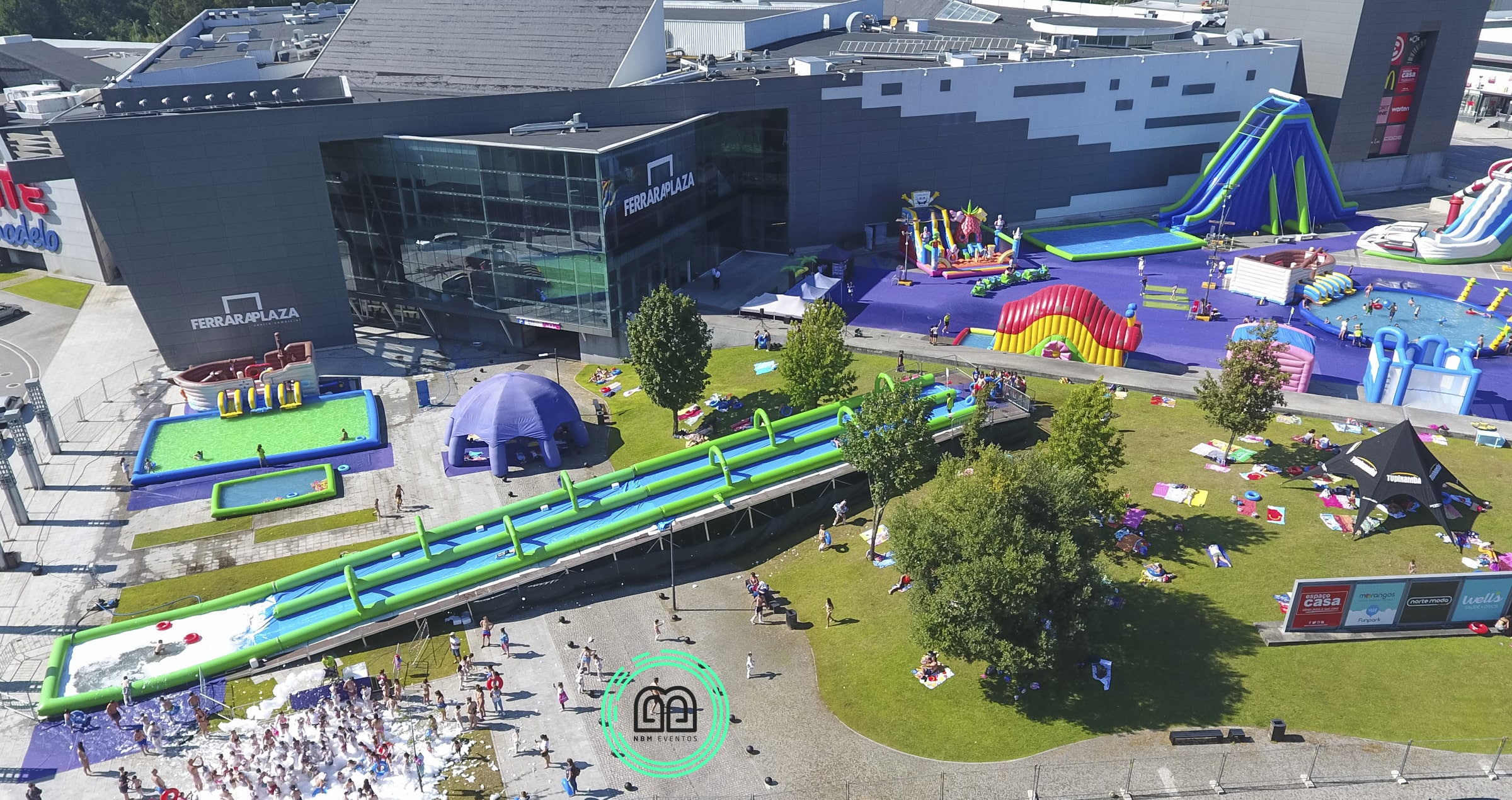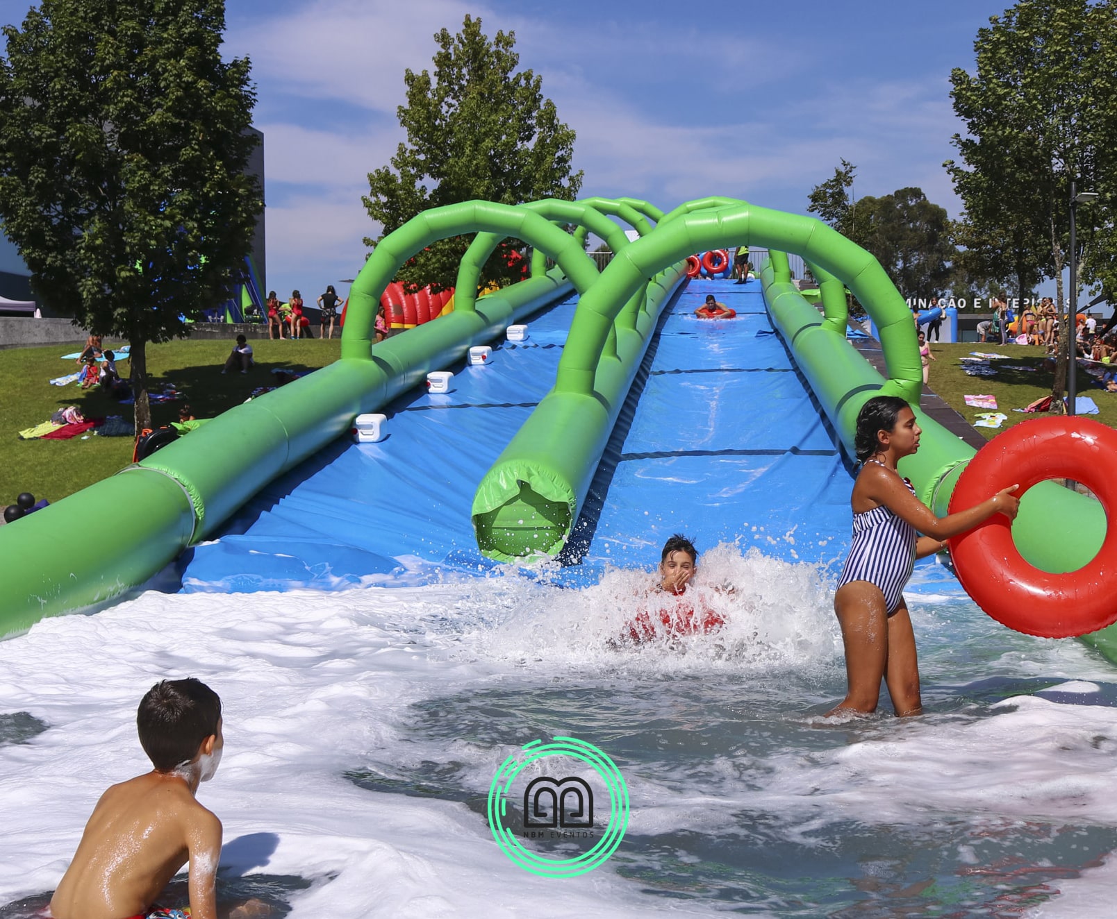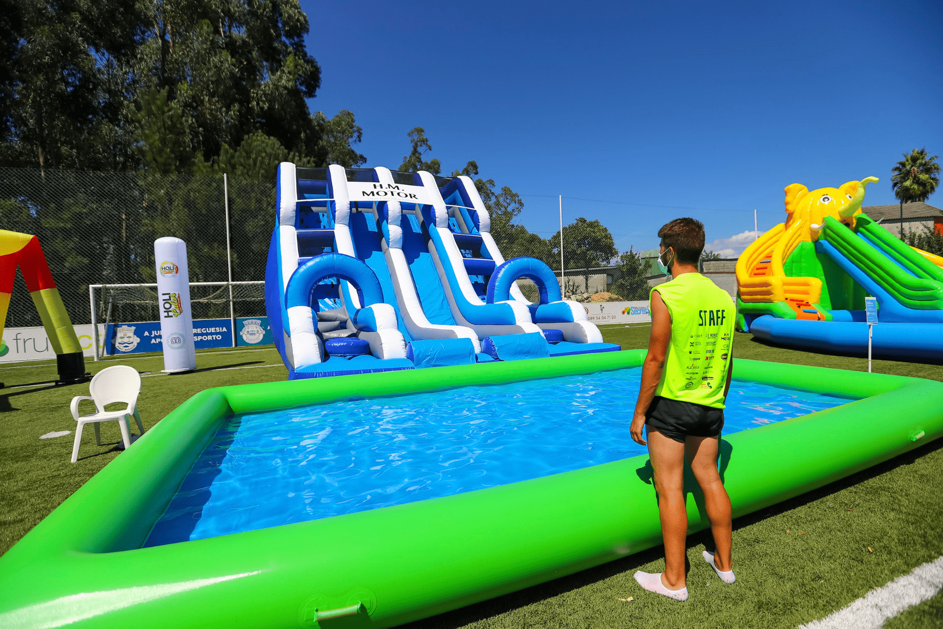 As atividades incluem insufláveis, jogos, piscinas ,musica e uma zona de restauração.