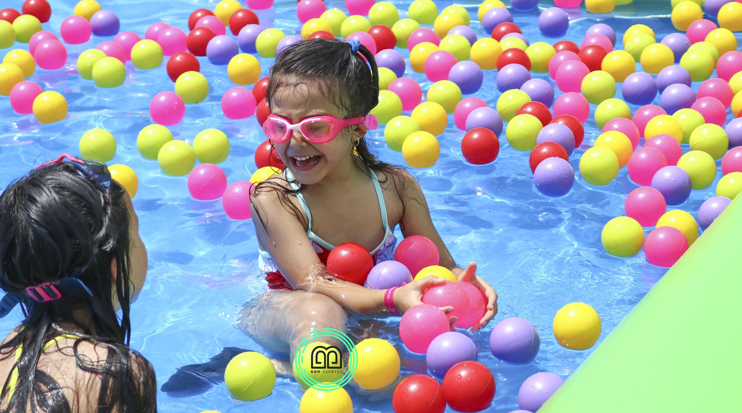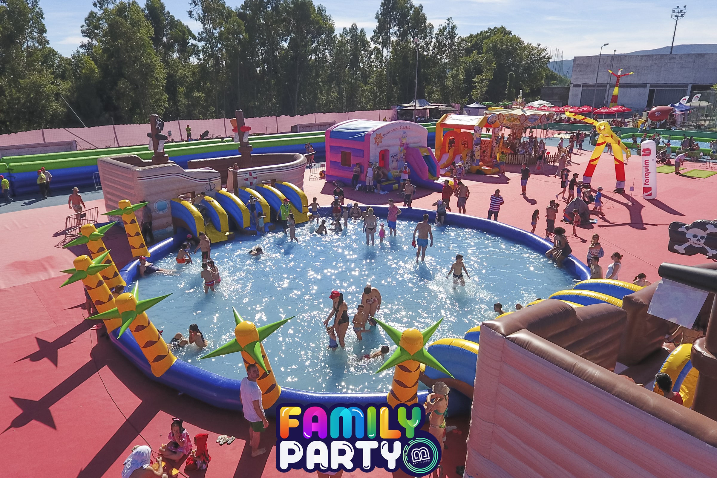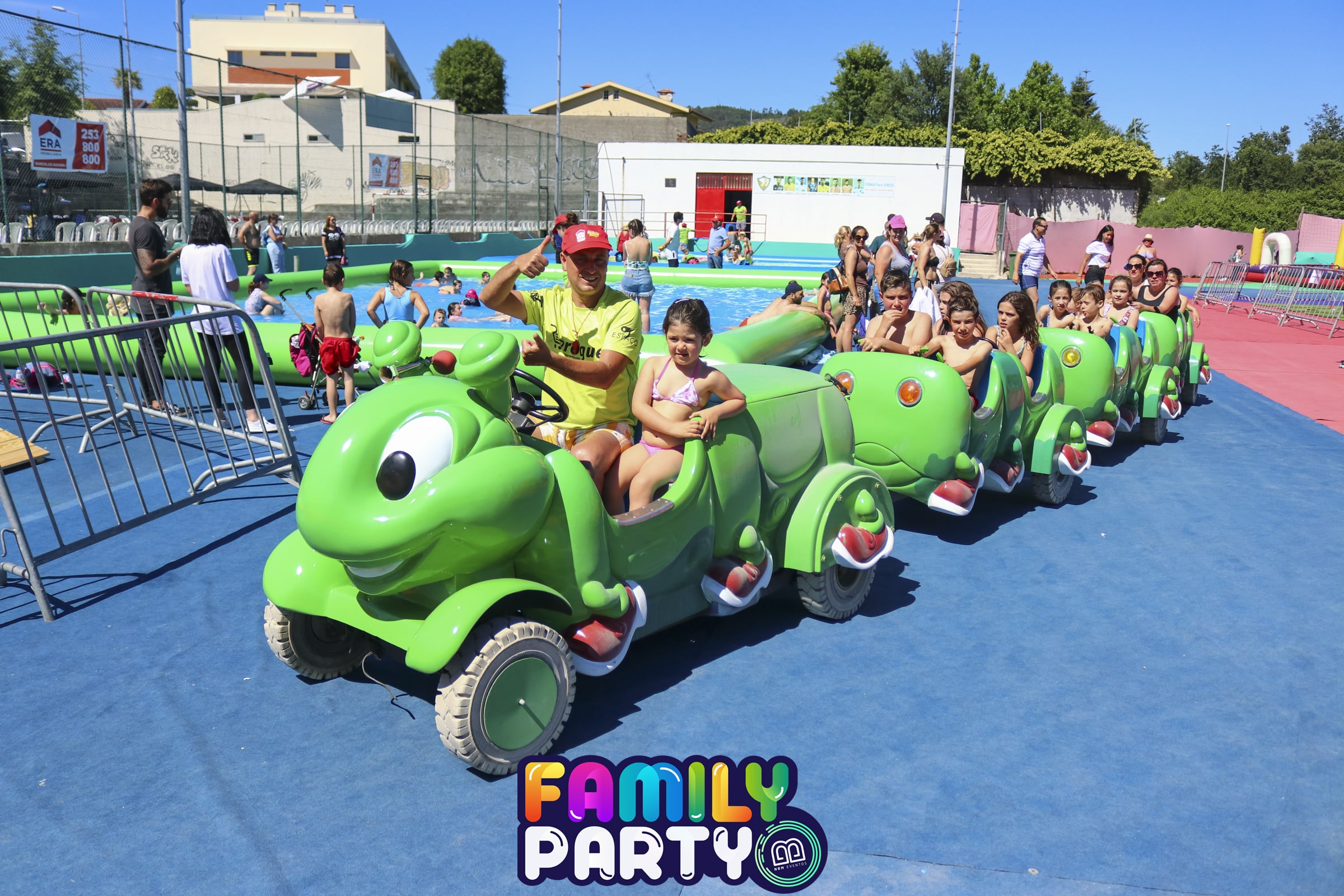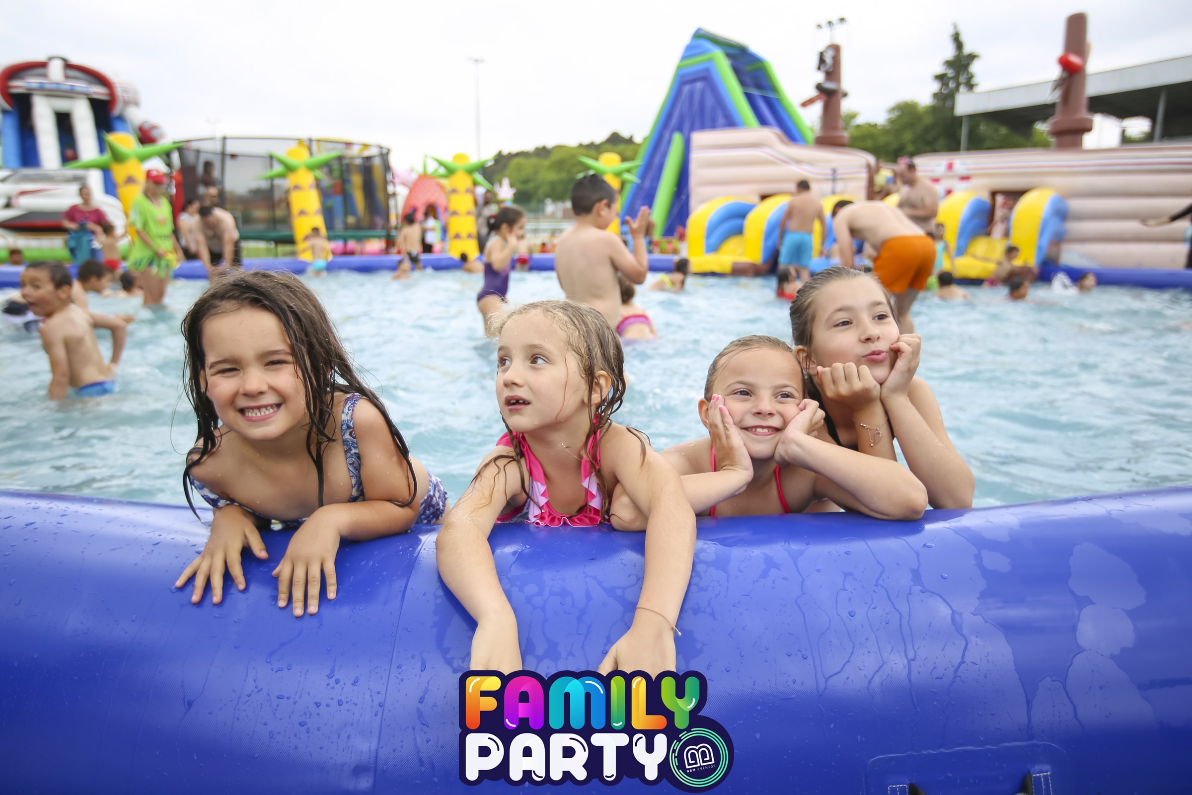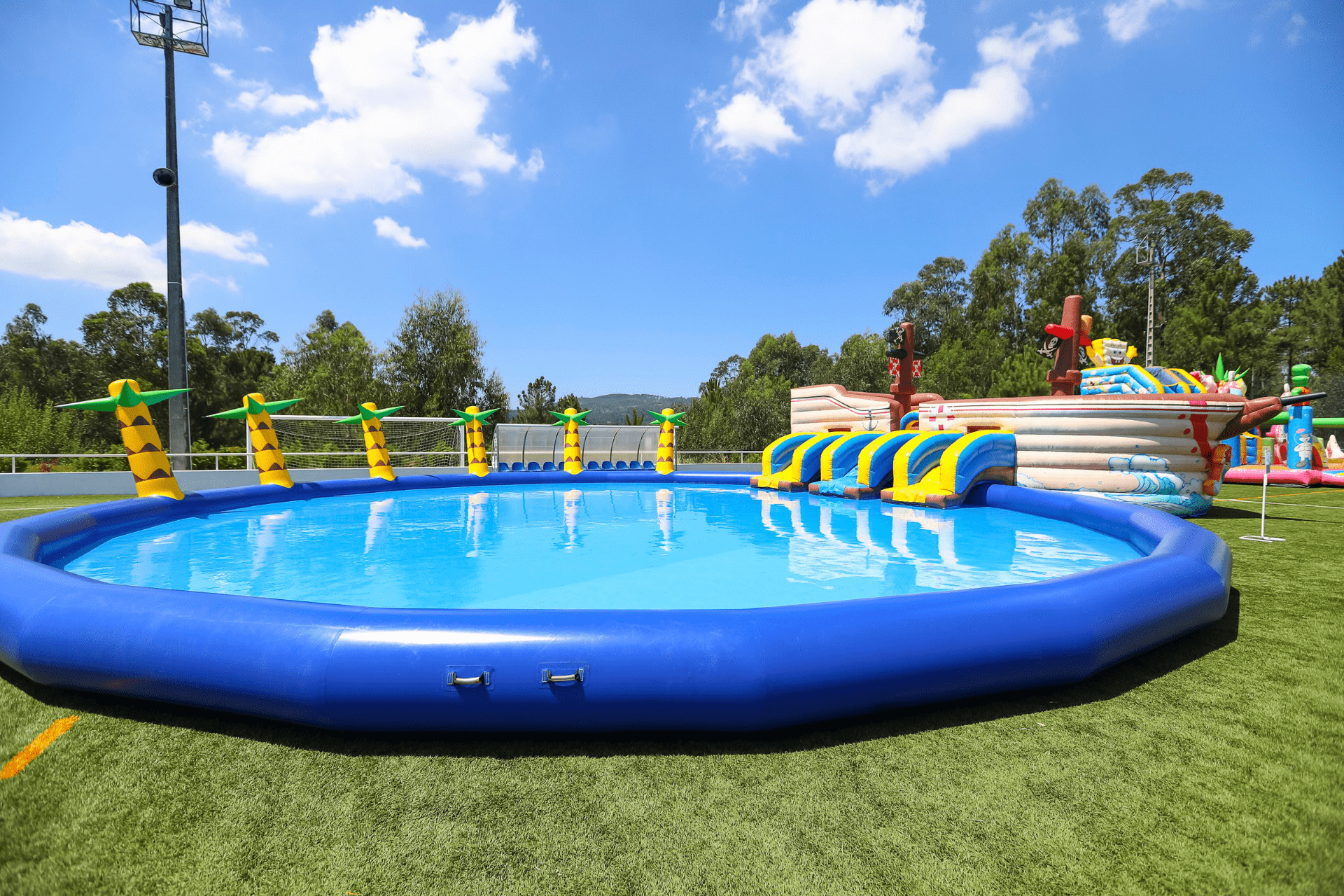 As atividades incluem insufláveis, jogos, piscinas ,musica e uma zona de restauração.