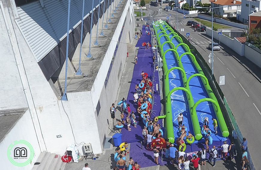 O Sun Water Slide, consiste num escorrega urbano gigante com mais de 600 metros de pista.